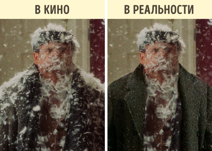 Коли видеоблогер з Великобританії спробував відтворити одну із сцен улюбленого всіма різдвяного фільму, він виявив, що в реальності все вийшло б не так гладко. Щоб пух дійсно прилип до лиця і одежі, потрібно було не просто випадково врізатися в натягнуту плівку, але і дуже активно розтерти клей по обличчю. Також не дуже зрозуміло, як пір'я прилипли до всієї одязі злодія, якщо клеєм було покрито тільки його обличчя.
