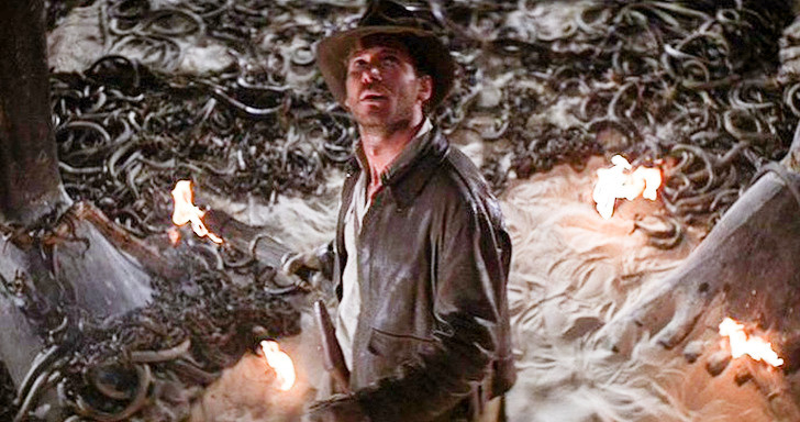 - Спілберг задумав ефектний кадр, в якому змії швидко розповзаються в сторони від кинутого в них факела. На ділі все вийшло зовсім навпаки: вони ще більше підходили до вогню погрітися. Кажуть, було дуже смішно спостерігати за відомим режисером, який вичитував змій, немов професійних акторів.