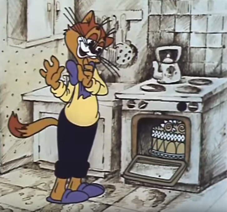 «Кіт Леопольд ставить у духовку вже готовий кремовий торт. От і живи з таким дружно...»
