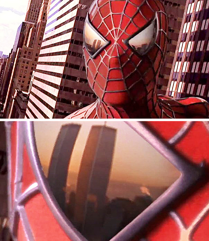 «В „Людині-павуку“ 2002 року на мить можна побачити вежі-близнюки, які відображаються в лінзах його маски»