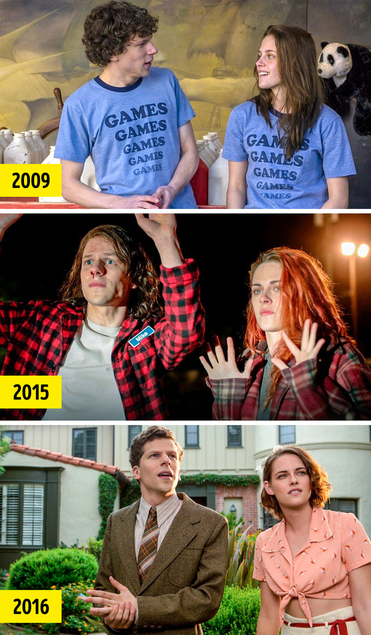 Джессі Айзенберг і Крістен Стюарт зустрілися на знімальному майданчику комедійної мелодрами «Парк культури і відпочинку». Джессі одного разу зізнався в інтерв'ю, що в дитинстві він був тихим і сором'язливим хлопцем, у якого не було друзів, тому він вдячний режисерові Вуді Аллену за можливість абсолютно неправдоподібних відносин в кіно. Мова йшла про мелодрамі «Світське життя», де вони разом зі Стюарт зіграли закохану пару.