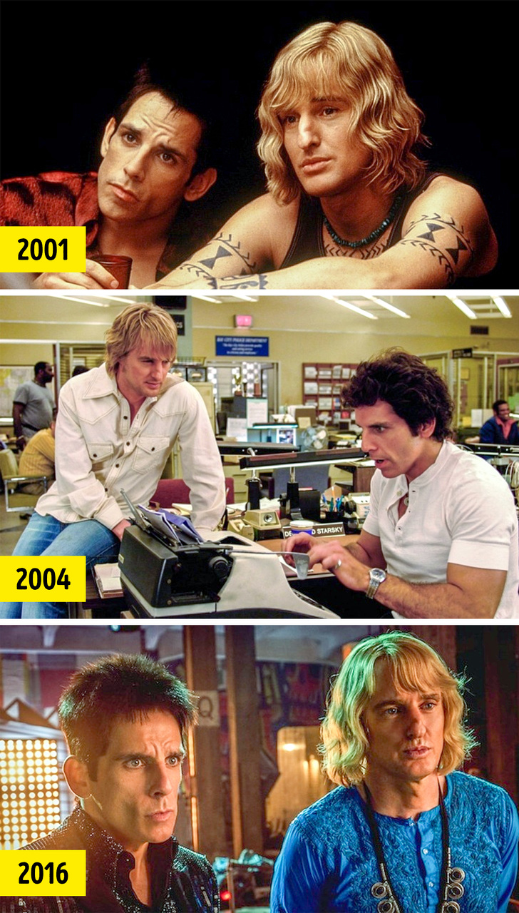 Мабуть, один з найяскравіших і впізнаваних комедійних дуетів в сучасному кінематографі. Актори познайомилися на зйомках фільму «Кабельник», де Стіллер був режисером. В той момент Бен Стіллер був набагато популярнішою свого колеги, тому він часто запрошував Оуена Уїлсона в різні проекти і чимало посприяв злету кар'єри одного. Разом друзі знялися в 11 фільмах.