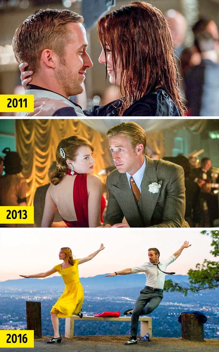 Цей дует склався ще в 2011 році на зйомках ромкоми «Ця безглузда любов». Райан Гослінг і Емма Стоун вже тричі зіграли в кадрі закохану пару. Кращий результат актори показали в оскароносному мюзиклі «Ла-Ла Ленд». Забавно, що спочатку ролі головних персонажів — Мії і Себастьяна — повинні були зіграти Майлз Теллер і Емма Уотсон.