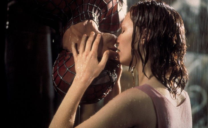 Поцілунок Людини-павука і Мері Джейн виглядав неймовірно ефектно: супергерой, перебуваючи догори ногами, цілує кохану під проливним дощем. Сам же актор згадує, що ця сцена далася йому неймовірно складно: висіти в такій позі було важко, тому що кров приливала до голови і до того ж вода затікала йому в ніс.