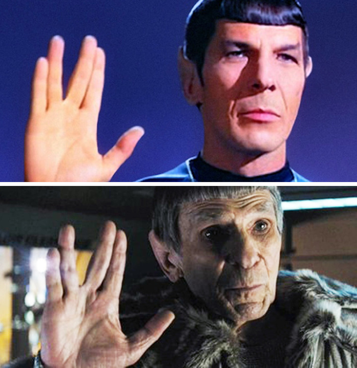 Леонард Німой (Спок) в серіалі «Стартрек» 1966 р. і у фільмі «Стартрек: Відплата» 2013 р.