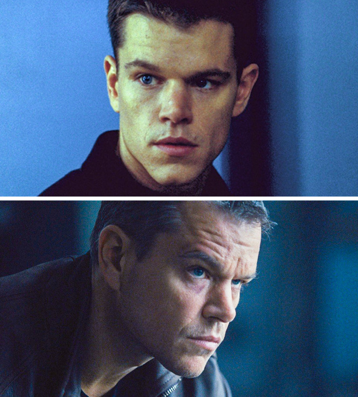 Метт Деймон (Джейсон Борн) у фільмах «Ідентифікація Борна» 2002 р. і «Джейсон Борн» 2016 р.
