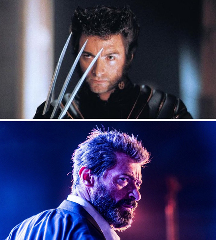 Х'ю Джекман (Росомаха / Логан) у фільмах «Люди Ікс» 2000 р. і «Логан» 2017 р.