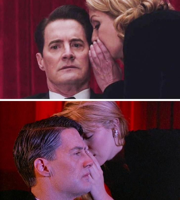 Кайл Маклахлен (Дейл Купер) і Шеріл Лі (Лора Палмер) в серіалі «Твін Пікс» в 1990 р. і 2017 р. відповідно