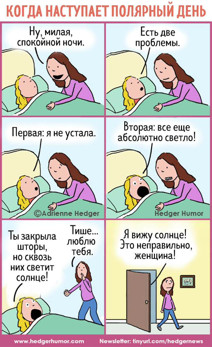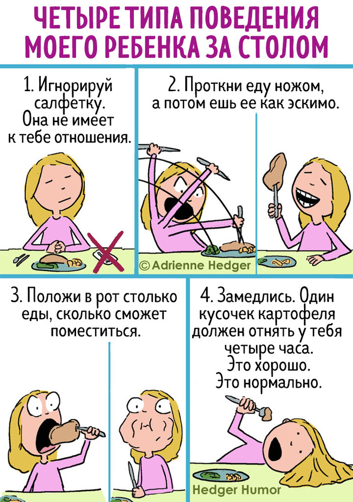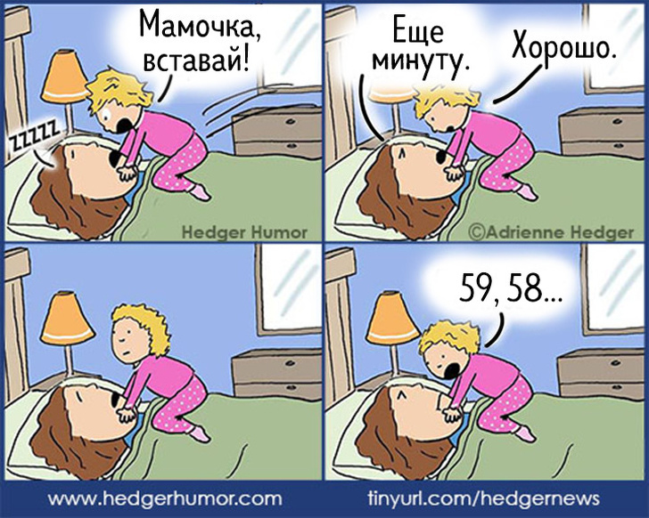 Адріенн Хеджер (Adrienne Hedger) — ілюстратор і мама трьох дітей. І вона точно знає все про непростий батьківського життя. З щоденних ситуацій, в які потрапляють діти її і вона сама, Адріенн створює комікси, в яких чесно і з гумором ділиться тим, як це, коли у тебе троє дітей, а потім викладає творіння на своєму сайті. А ще вона написала кілька маленьких ілюстрованих книжок, у яких розповіла, як бути мамою.