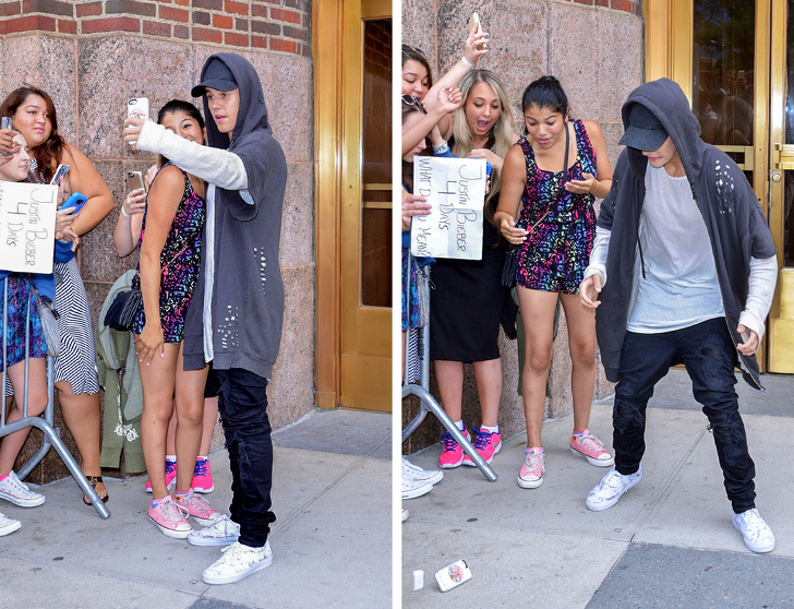 6. Джастін Бібер роняє телефон під час селфи з фанаткою