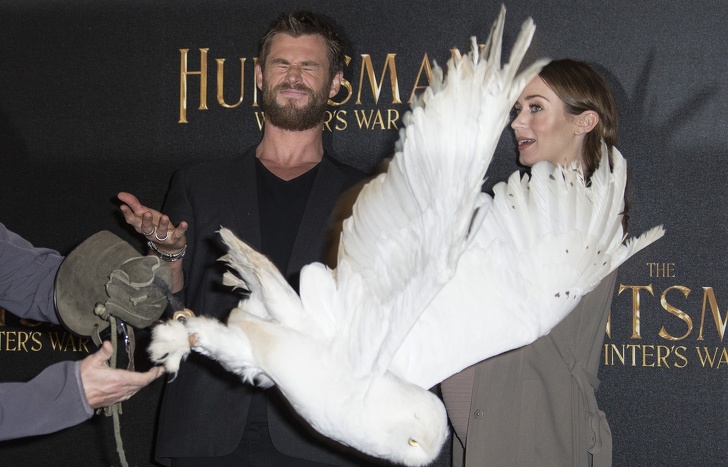 8. Кріс Хемсворт не подружився з совою на прем'єрі фільму «Білосніжка та мисливець — 2»