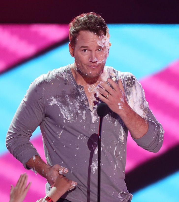 14. У Кріса Прэтта запустили кілька кремових тортів із залу