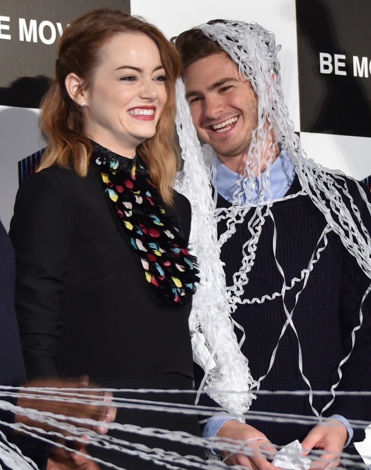 4. Емма Стоун і Ендрю Гарфілд заплуталися в паперовій павутині, але роблять вигляд, що все в порядку