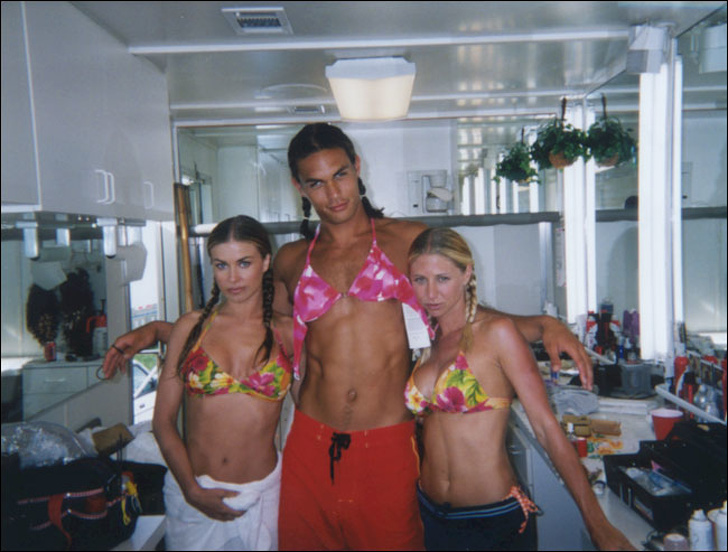 6. Джейсон Момоа і Кармен Електра за лаштунками к/ф «Рятувальники Малібу: Гавайська весілля», 2003 рік