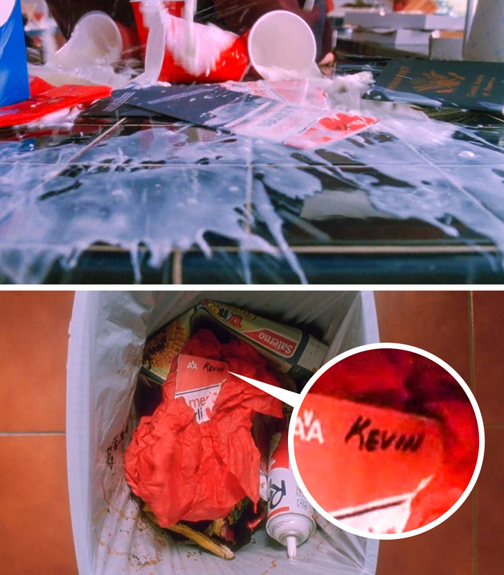 Виявилося, творці фільму все продумали. В одній зі сцен ми бачимо, як напередодні ввечері на кухні стався невеликий конфлікт, при цьому забруднився стіл, де лежали документи та квитки. Кевіна батько заходився витирати зі столу і, здається, зовсім випадково викинув квитки разом із серветками: їх добре видно в сміттєвому відрі. Ось і весь секрет: на наступний ранок в суєті всі діти отримали по примірнику квитків, а малюк Кевін залишився один удома.