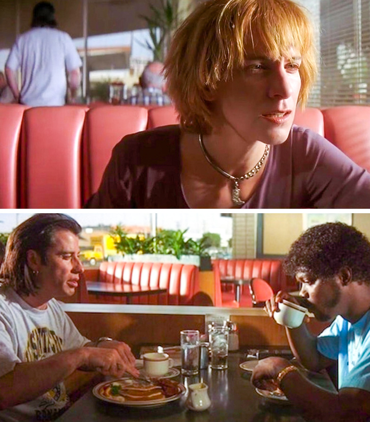 - Квентін Тарантіно обожнює залишати пасхалки у своїх картинах, і фільм «Кримінальне чтиво» не став винятком. Нагадаємо, що сюжет стрічки розвивається нелінійно. У першій сцені ми бачимо, як пара дрібних грабіжників, Рінго і Іоланда, сидить в кафе і обговорює можливість пограбування. Вони дістають пістолети — і відразу після цього починаються вступні титри.