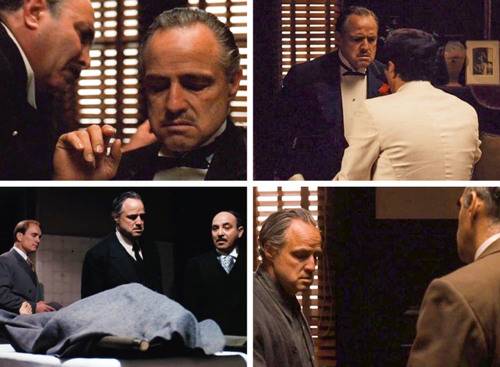 - Творці фільму «Хрещений батько» припустили, що образ Віто Корлеоне вийде куди більш зловісним, якщо під час сцен важливих розмов глядач не буде бачити його очей. Трюк вдався на всі сто, а Марлон Брандо впорався з роллю просто блискуче.
