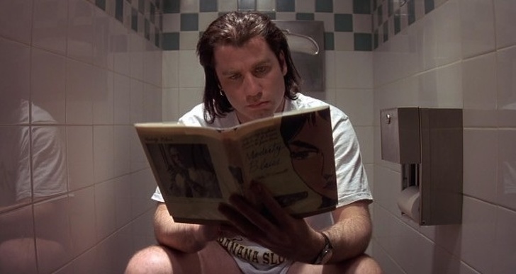 - До речі, кожен раз, коли Вінсент йде в туалет, починають відбуватися нехороші справи. У перший раз після повернення з туалету він виявляє бездиханне Мію Уоллес, вдруге він потрапляє прямо до пограбування в кафе, ну а в третій раз гине прямо в туалеті від автоматної черги, яку в нього від несподіванки випустив Бутч (Брюс Вілліс).