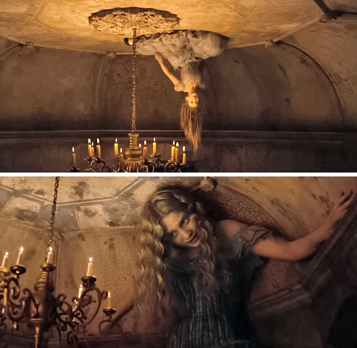 Розпис на стелі спочатку практично непомітна, але буквально в наступній сцені стає набагато яскравіше й виразніше.