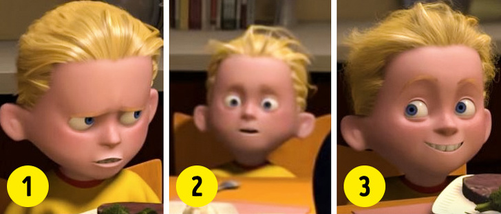 У сцені сімейного вечері зачіска Шастика зазнає безліч змін: за пару секунд можна побачити як мінімум 3 її варіації.