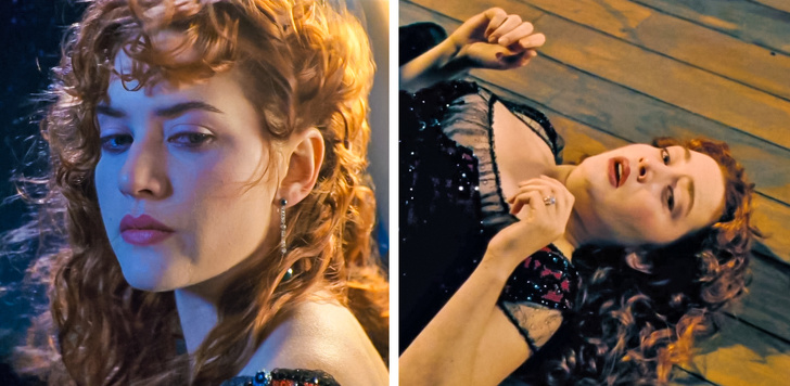 Сцена, в якій Роуз вирішила зістрибнути з «Титаніка» в крижані води океану. Під час її розмови з Джеком у вухах дівчини можна помітити симпатичні сережки, але коли молода людина рятує Роуз і вона падає на палубу, сережки таємничим чином зникають.