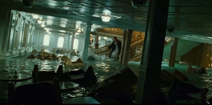 «Титанік» почав тонути вночі, і глядачі бачать, що корабель з усіх боків оточений нічною імлою. Тільки ось незрозуміло, звідки в цій сцені з'явився яскраве денне світло, що б'є прямо у вікна?