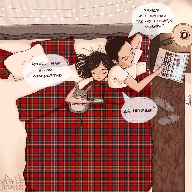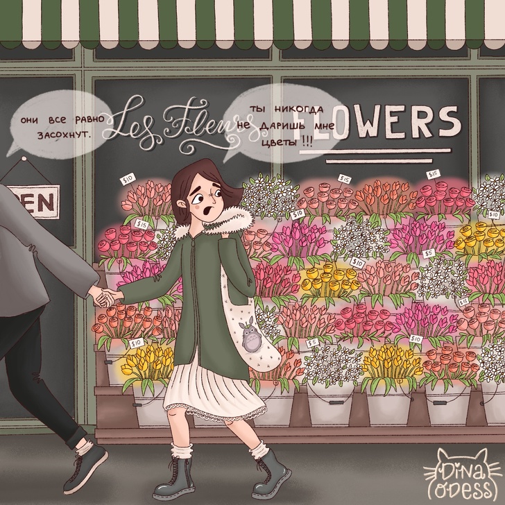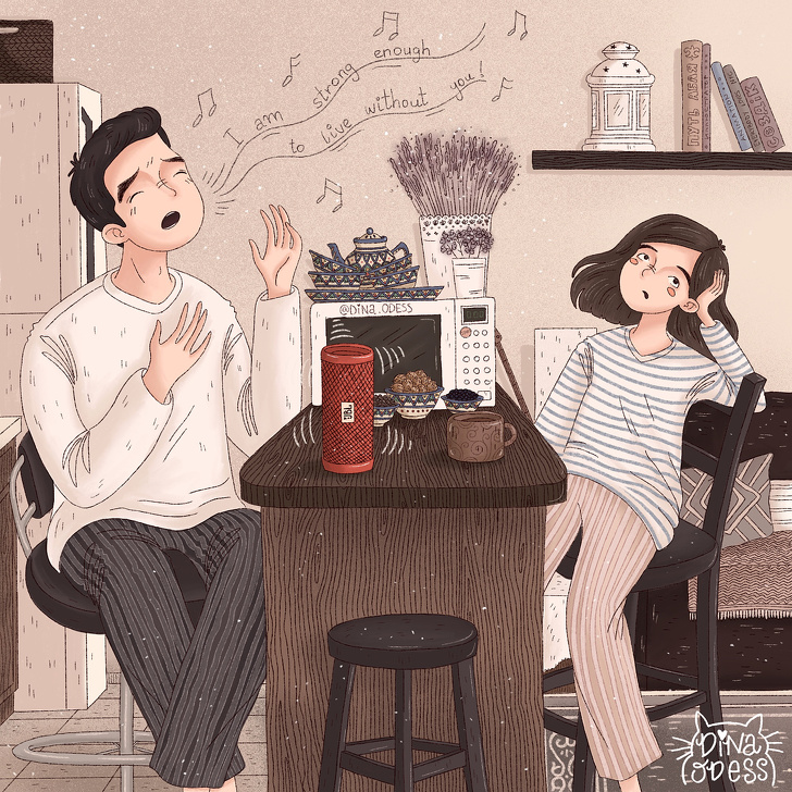 Діна Одес (Dina Odess) — молода художниця з Казахстану, яка зараз живе в Нью-Йорку. Дівчина працює дизайнером інтер'єрів, а також займається цифровою ілюстрацією. Нещодавно вона почала цікавий проект — під хештегом #99relationshipillustrations Діна хоче опублікувати 99 ілюстрацій про стосунки. Кожен малюнок — це момент з життя закоханих, фрагмент звичайного дня, який став особливим завдяки особливій людині поруч.