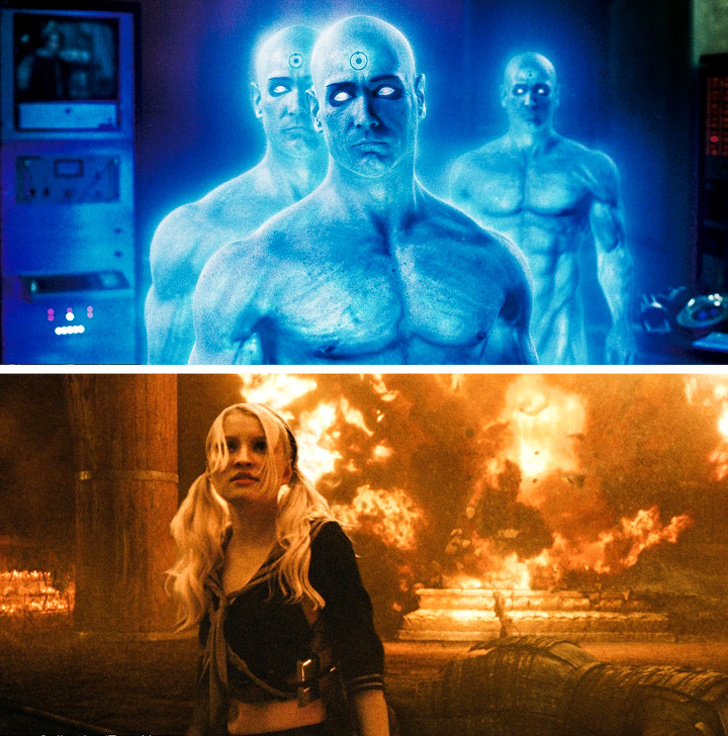 - У фільму є своя колірна гамма («300 спартанців» — сепія, «Хранителі» — синьо-блакитна, «Заборонений прийом» — сіро-жовта).