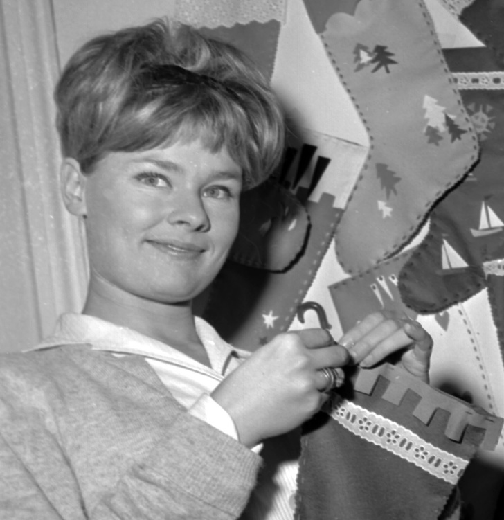 21. Джуді Денч вішає різдвяний панчіх в своїй квартирі, 1963 рік