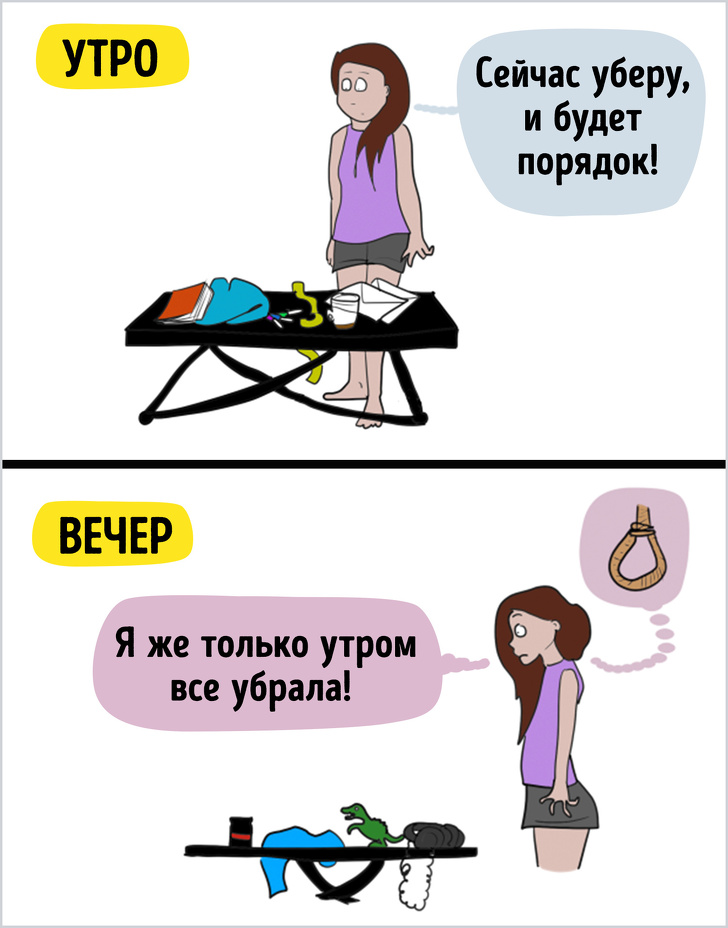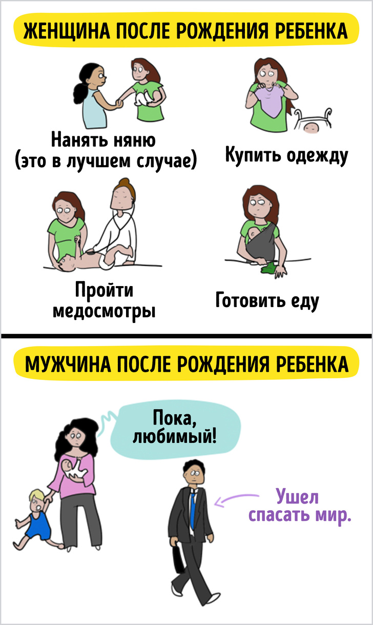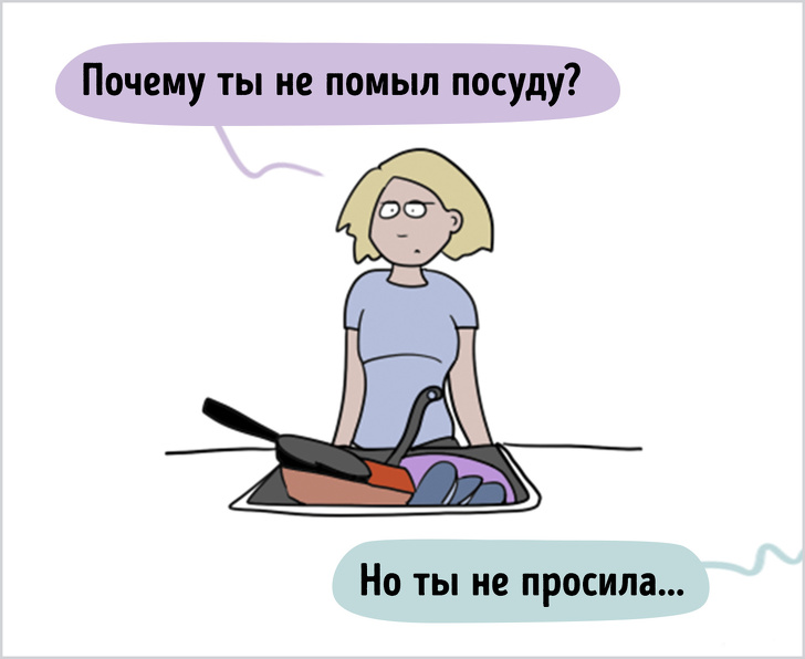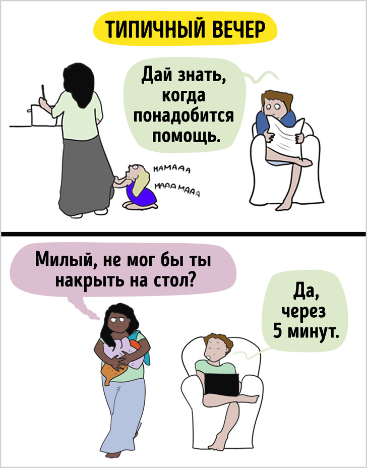 «Коли чоловік очікує, що партнерка сама попросить його зробити щось, він сприймає її кимось на кшталт менеджера по веденню домашнього господарства. Менеджера, завжди знає, що і коли потрібно зробити. Проблема в тому, що планування і організація всіх домашніх справ — це те ж саме, що робота на повний день в офісі», — пише Емма. Виходить, що жінка повинна сама і організувати, і виконати більшу частину роботи по дому.