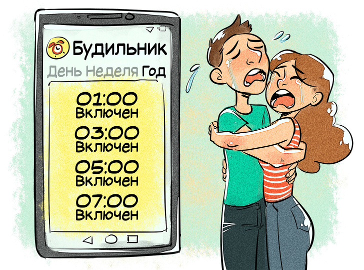 Цікавий факт: За допомогою звичайного програми «Будильник» ви можете відчути себе батьками немовляти. Заплануйте кілька сигналів на кожну ніч протягом року. Без вихідних. В якості рінгтона використовуйте запис нестямної нявкання кота, який, як і ви, вирішив завести дітей.