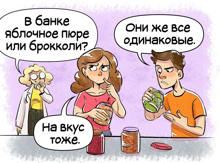 Мета: Цей експеримент дозволить визначити, наскільки розвинені смакові сосочки мови майбутніх батьків. Пропонується використовувати не менше 4 видів дитячого харчування з відклеєними етикетками.