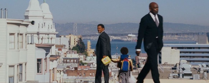 В кінці цього байопіка повз Кріса Гарднера, якого грає Уілл Сміт, проходить справжній Кріс Гарднер, про життя якого і розповідає фільм.