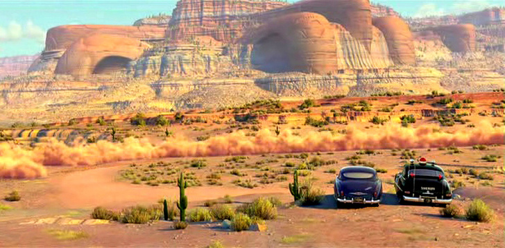 У цьому мультфільмі каньйони намальовані у формі передніх частин ретро-автомобілів: капота, грати радіатора, крил.