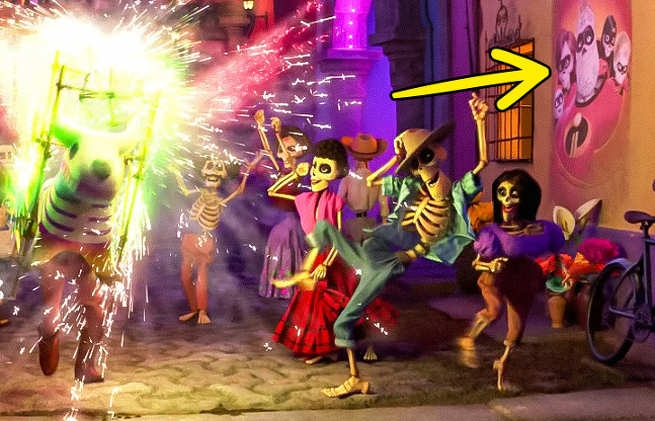 В одній зі сцен, коли Мігель вже знаходиться в світі мертвих, на стіні можна побачити постер до мультфільму «Суперсімейка». Причому члени Суперсімейки теж є скелетами.