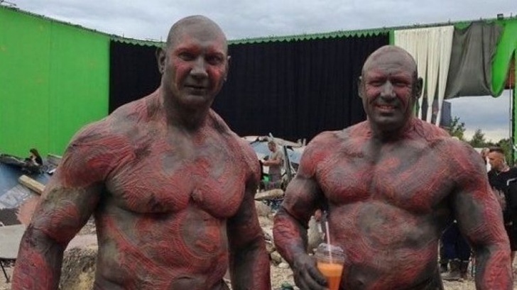Дейв Батіста в ролі Дракса зі своїм дублером Робом де Гроотом