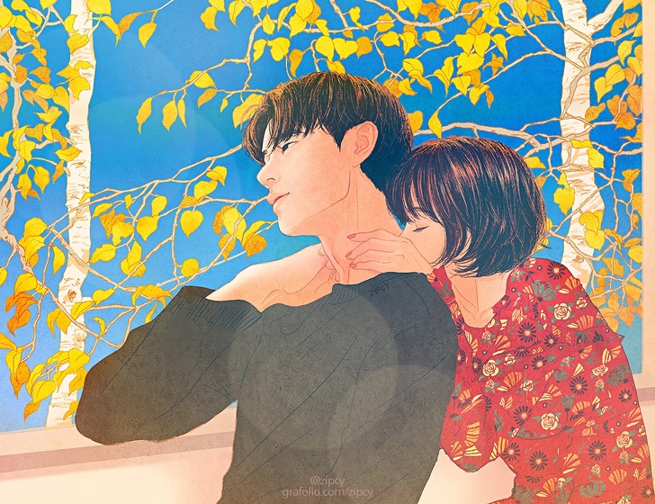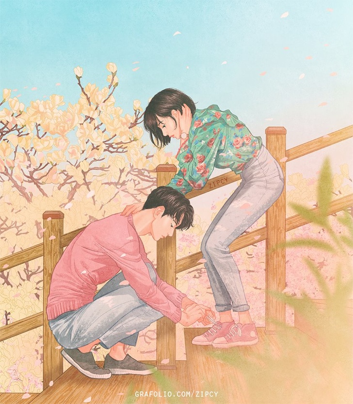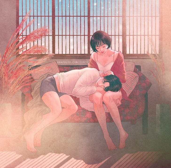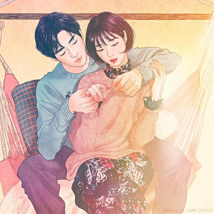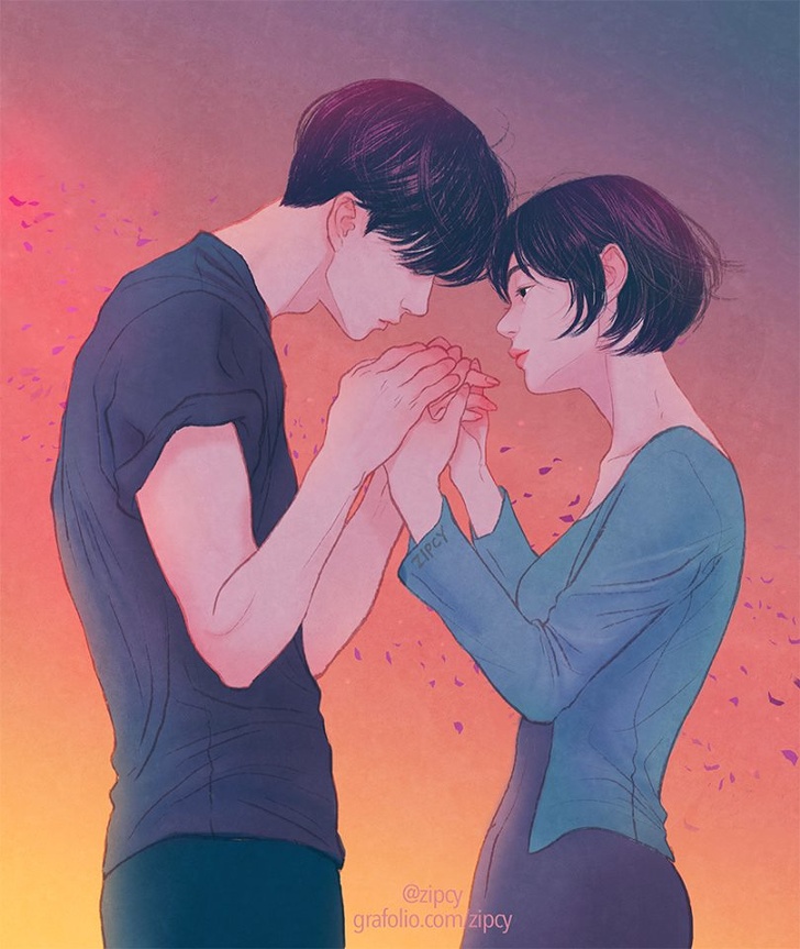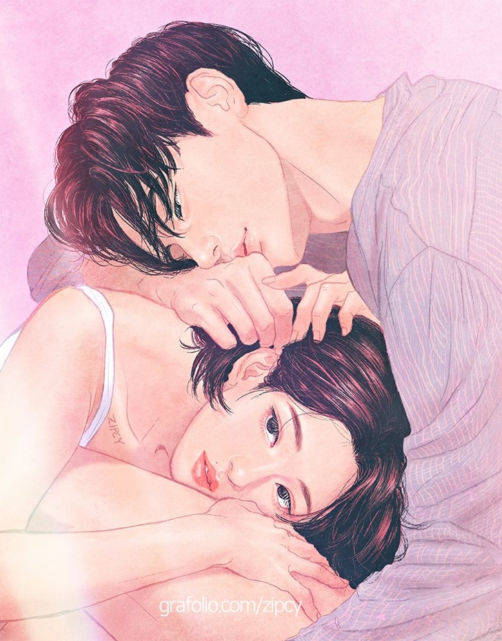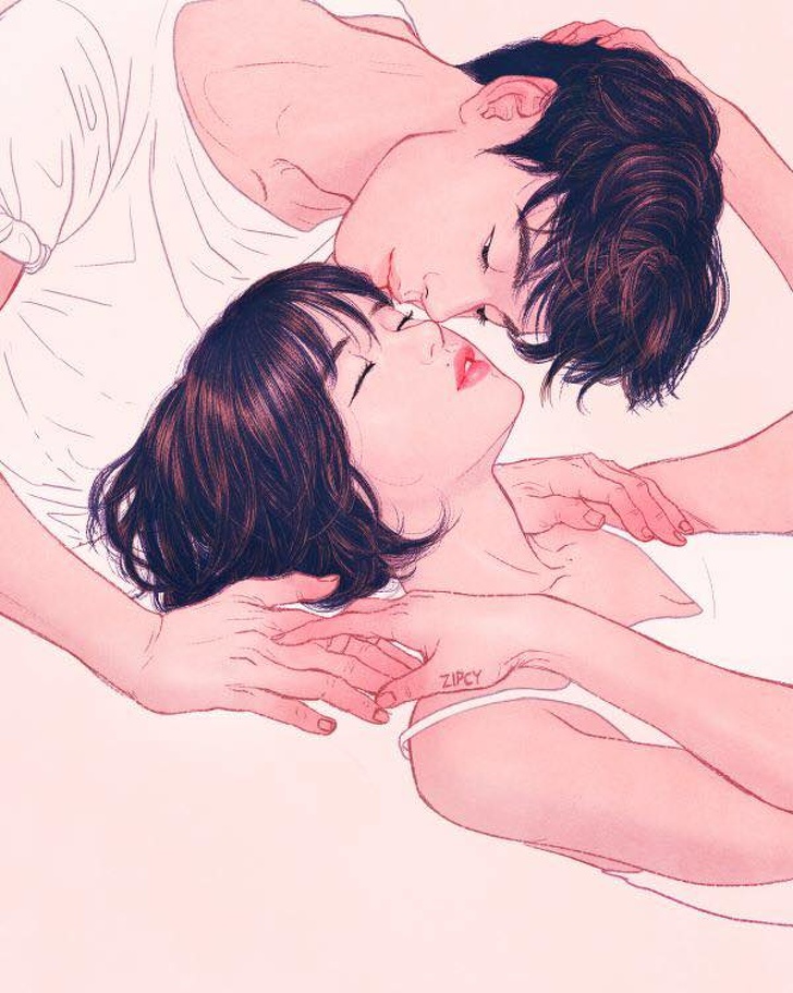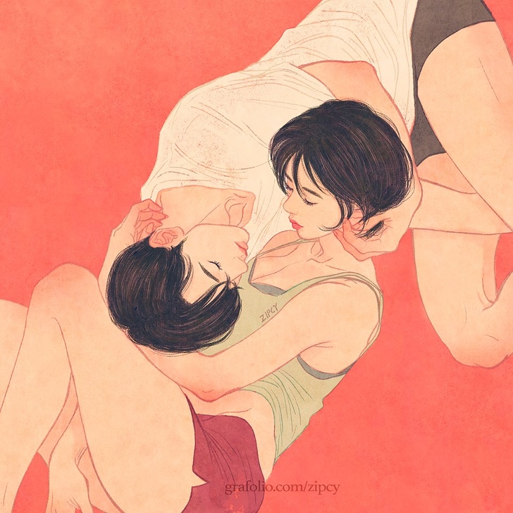 Zipcy — 30-річна художниця з Сеула, яка у своїх ілюстраціях досліджує чуттєву сторону любові. На серію робіт «Дотик» її надихнули стосунки з чоловіком. Художниці захотілося намалювати всю ту ніжність, легкість, мрійливість і пристрасть, які відчувають найміцніші пари.