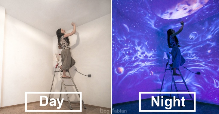 А ви б хотіли собі таку кімнату? Щоб вдень на стінах був один малюнок, а вночі — зовсім інший?