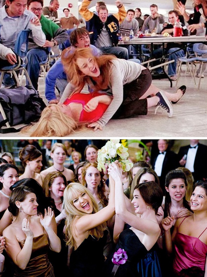 Почнемо з того, що змагаються жінки зустрічаються в кіно частіше, ніж жінки, підтримують один одного. А вже дівчата, що б'ються за хлопця (або змагаються, наприклад, з-за букета на весіллі), і того частіше. Більш стереотипної причини для ворожнечі і придумати не можна. Навіть не хочеться уявляти, який неприємний і неправильний образ жінки транслює такий штамп у суспільство.