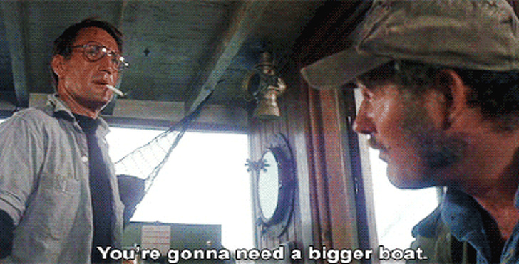 Вперше побачивши, як величезна насправді акула-вбивця, ошелешений і переляканий шериф Броуді видає знамениту фразу: «Тобі знадобиться човен побільше». Рой Шайдер, який виконував роль Броуді, в цей момент не слідував сценарієм, але його реакція ідеально вписалася в момент.