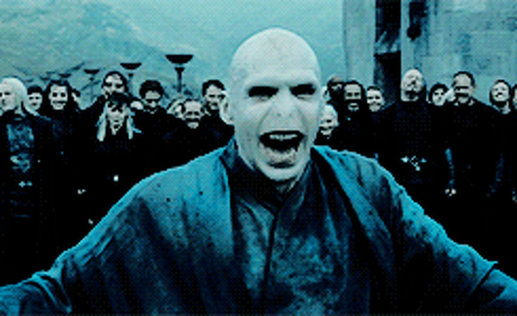 Під час зйомок фінальної мови Волан-де-Морта виконавець його ролі Рейф Файнс не переставав імпровізувати: в кожному дублі він говорив по-різному, щоб оточуючі актори (а значить, і їх герої) не знали, чого від нього очікувати. Ось так вийшло, що підсумкова версія його промови була незапланованою.