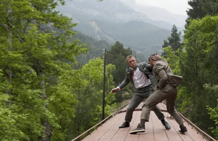 Актор Деніел Крейг дійсно відмовився від дублера і виконував трюки сам на даху потяга. Ну чим вам не справжній Джеймс Бонд?