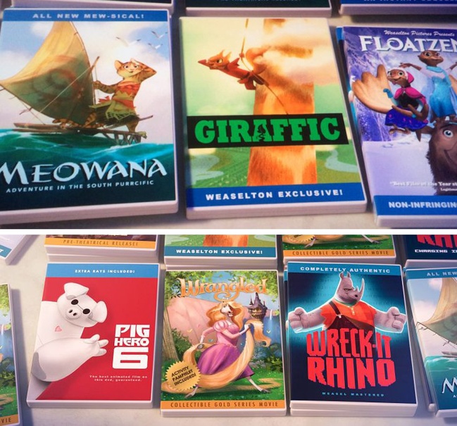 В одній зі сцен «Зверополиса» нам демонструють справжню колекцію мультфільмів Disney, назви яких трохи змінили згідно з правилами тваринного світу. Тут можна побачити диски «Міста героїв», «Рапунцель», «Моаны», «Ральфа», а також мультфільми, які ще не з'явилися на екранах, — це «Холодне серце — 2» (вийде в 2019 році) і «Велетні» (прем'єра очікується в 2018 році).