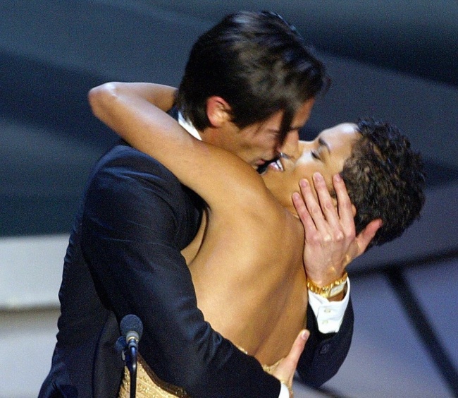 Але набагато більш непередбачуваною була реакція Едрієна Броуді: коли він вийшов отримувати статуетку за роль у фільмі «Піаніст», то так зрадів, що спочатку міцно обійняв Хеллі Беррі (вона вручала йому премію), а потім і зовсім поцілував її. На радість публіці, актриса не розгубилася і відповіла йому взаємністю. До речі, до цього дня актори не були знайомі.