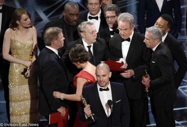 - Мабуть, самий головний переполох за всю історію премії стався в 2017 році — тоді сталася епічність помилка з оголошенням кращого фільму. Через плутанину з конвертами переможцем оголосили фільм «Ла-Ла Ленд», хоча насправді в даній номінації виграла драма «Місячне світло».