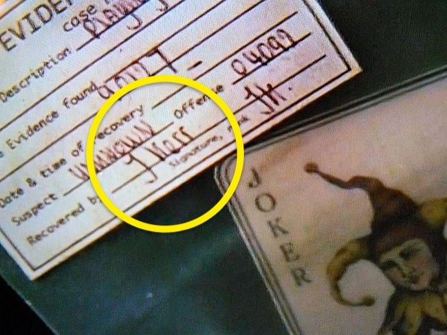 В кінці 1-ї частини трилогії Крістофера Нолана комісар Джеймс Гордон передає Бетмену доказ (карта Joker), до якої прикріплена бирка. Внизу на ній можна побачити ім'я J. Kerr, що є відсиланням до одного з псевдонімів Джокера — Джозеф Керр.