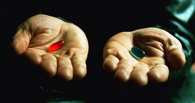 12. В якій руці Морфеуса червона пігулка, а в якій синя?