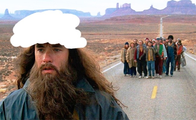 1. Який головний убір надітий на Форрест Гамп?
