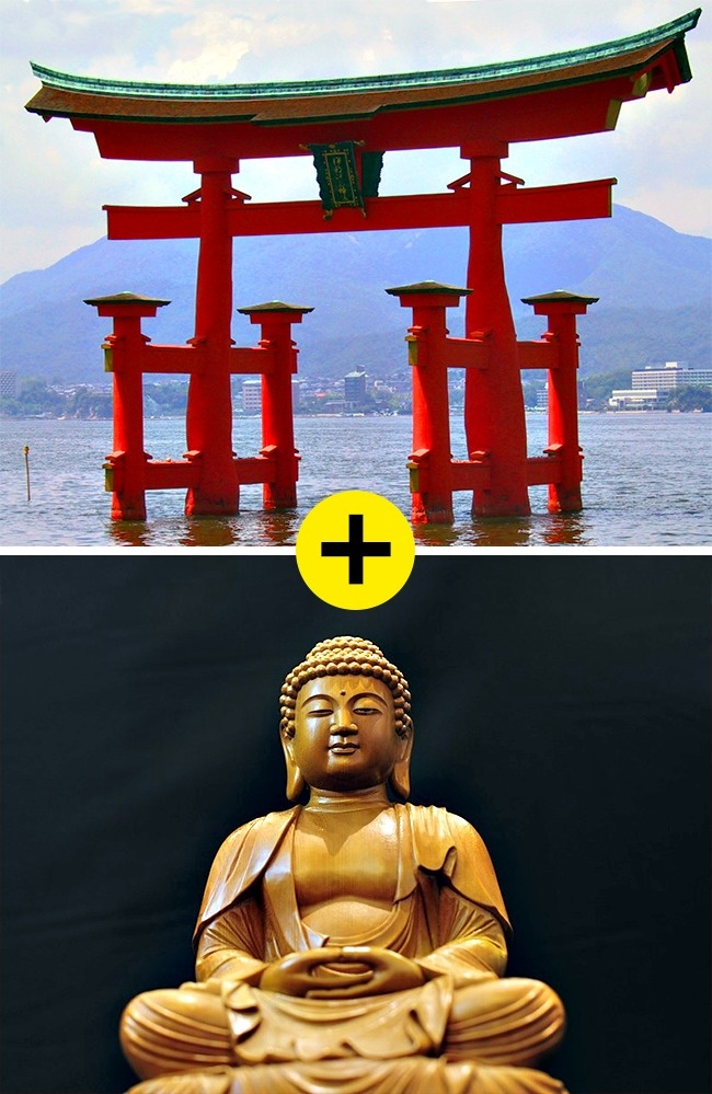 Почасти так воно і є. Але мало хто знає, що більшість японців сповідують одночасно дві релігії — синтоїзм і буддизм, і це їх особливо не бентежить. Таке змішання релігій називається релігійним синкретизмом. А взагалі в Японії порівняно багато атеїстів — близько 30 %.