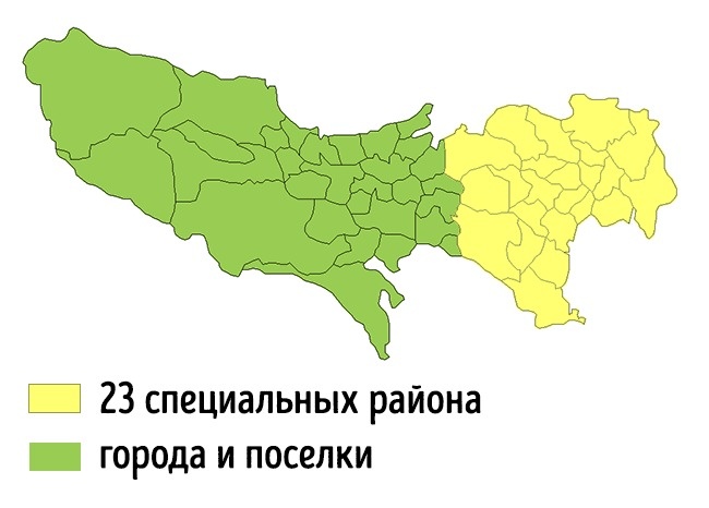 Офіційно місто Токіо існував лише з 1889 року по 1943-й. Зараз це не місто, а одна з префектур, інакше кажучи, столичний округ, який складається з 62 адміністративних одиниць. 39 з них — це міста, селища і сільські громади. Інша частина — 23 спеціальних райони, і часто, коли говорять «Токіо», мають на увазі саме їх. Кожен з цих районів прирівняний до статусу міста, у кожного з них навіть є свій мер.